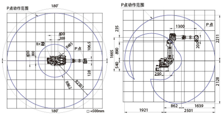 | 机器人动作范围截面面积 | 9.53m2x360° | |